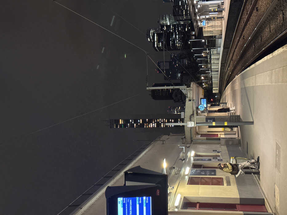 - "The image captures a nighttime view of a train station platform in Puteaux, France, looking eastward towards the illuminated skyline of La Défense" by FM-Q2t9f1, licensed under CC BY 4.0