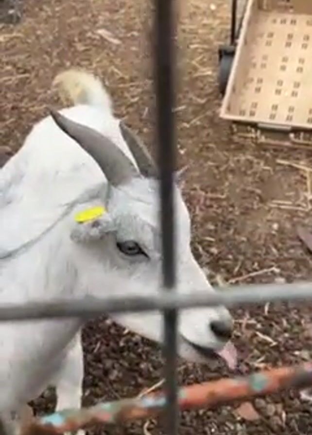 - "A close-up video shot through the bars of a rusty metal fence shows a small, white goat being petted" by FM-Uyq9d2, licensed under CC BY 4.0