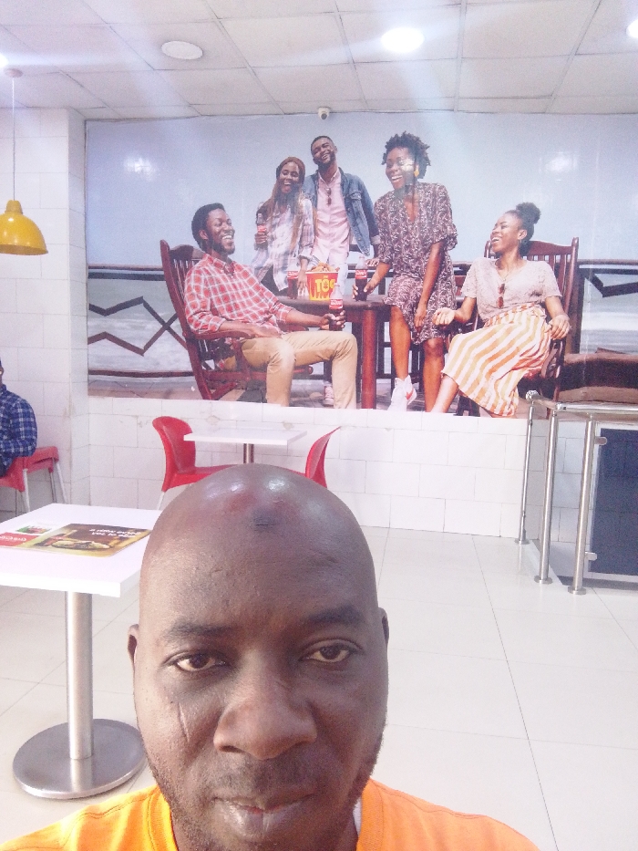 The image captures an indoor scene, identified as a casual eatery or restaurant in Giginyu, Nigeria