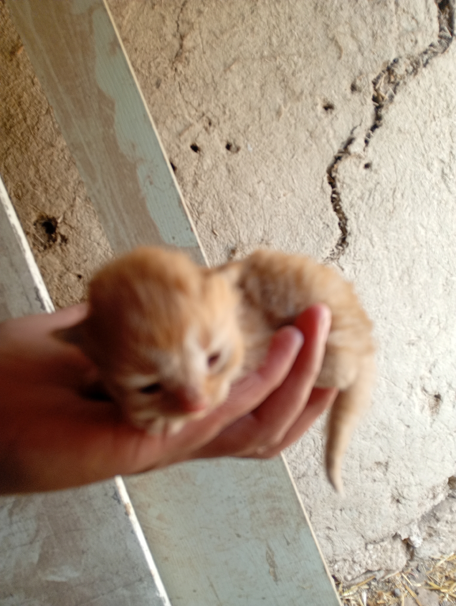- "A blurred, close-up image shows an orange kitten held in a person's hand" by FM-xXQqK2, licensed under CC BY 4.0