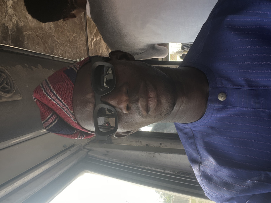 An adult dark-skinned male is prominently featured, centered in the frame, inside what appears to be a vehicle