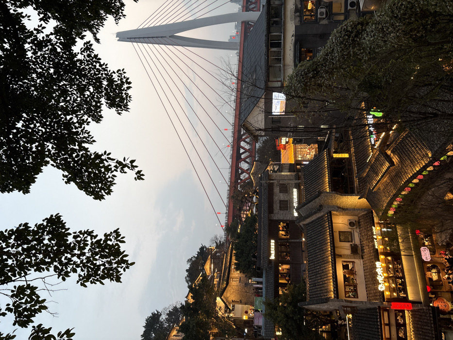 - "The image displays an elevated view of Longmenhao Old Street, situated within Nan'an District, Chongqing, China, captured during dusk or early night" by FM-2qO1X2, licensed under CC BY 4.0