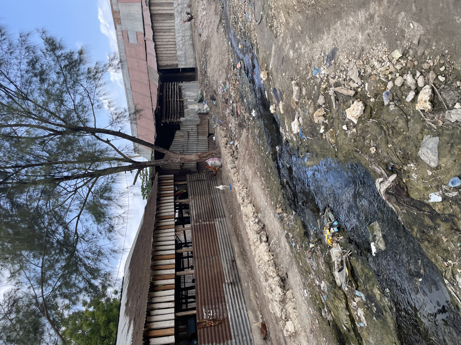 The image depicts an urban or semi-urban environment, consistent with areas found in Dar es-Salaam, Tanzania