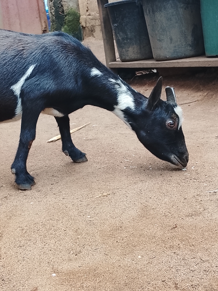 - "A black goat with distinct white markings is depicted in an unpaved area within Awada, Nigeria" by FM-mJtZ02, licensed under CC BY 4.0