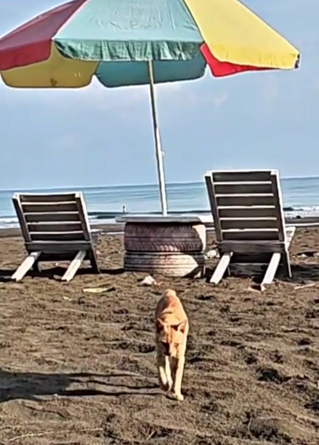 - "sandy beach with an orange cat walking toward the camera" by FM-he8AW2, licensed under CC BY 4.0