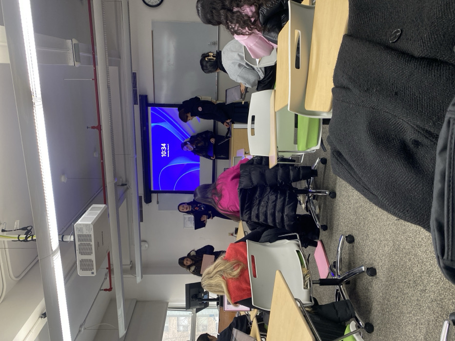 - "A classroom scene shows students presenting in front of a large display showing the time "10:34" by FM-0qVa33, licensed under CC BY 4.0