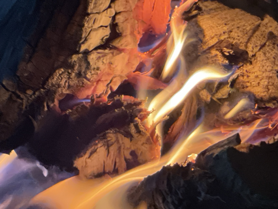 - "Burning wood fills the frame, showcasing textures of charred surfaces and glowing embers" by FM-vijg43, licensed under CC BY 4.0