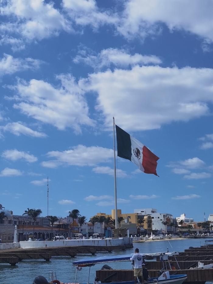 - "Mexican flag flying on a tall flagpole in the city of Cozumel, Mexico" by FM-JgPQm1, licensed under CC BY 4.0