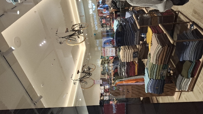 - "Inside a retail space, racks showcase neatly folded clothes" by FM-VH5CK2, licensed under CC BY 4.0