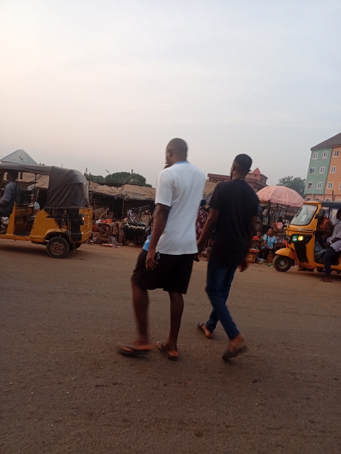 - "Two men walk across a street in an outdoor market" by FM-8m6v23, licensed under CC BY 4.0