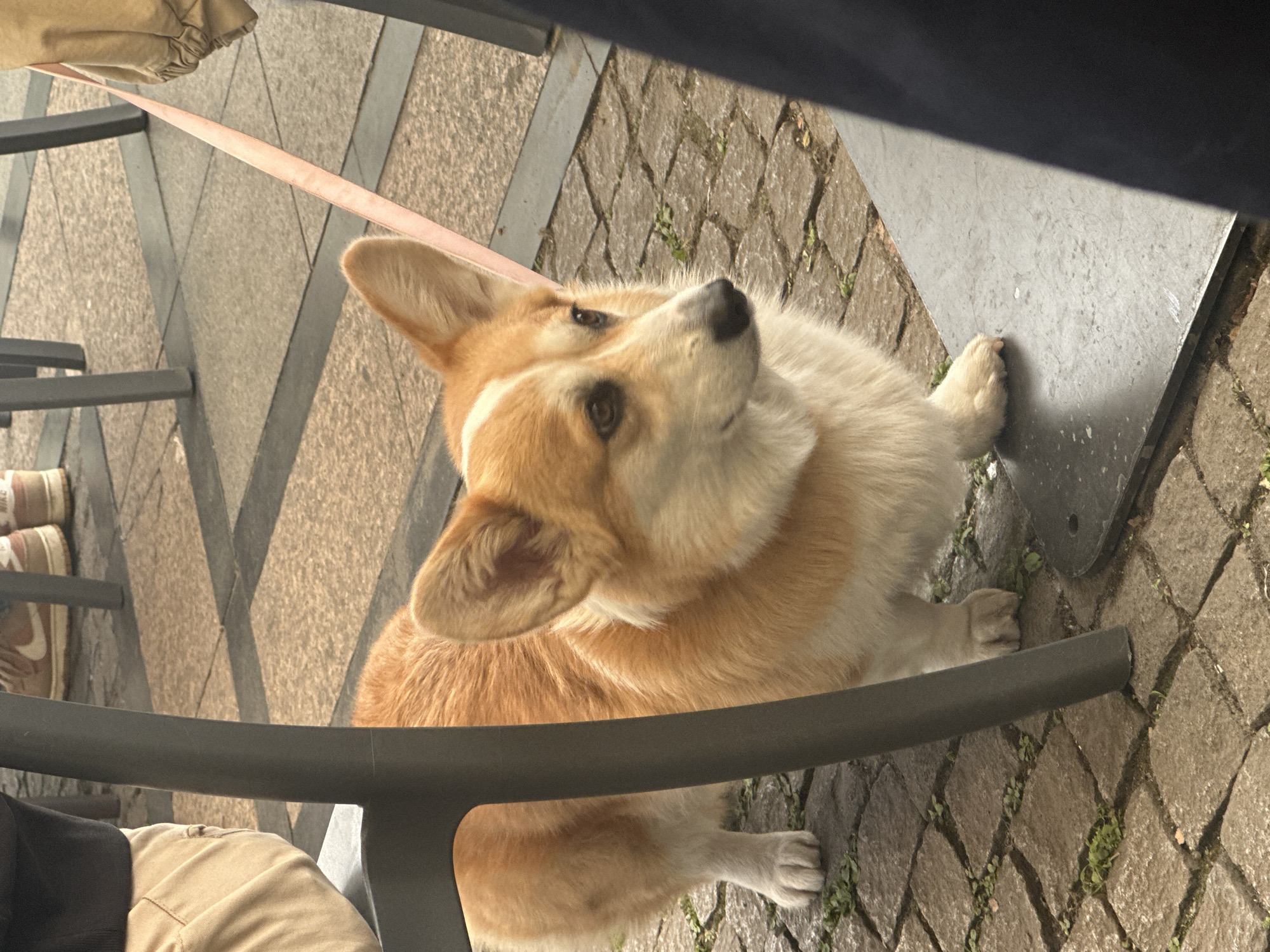 - "A corgi dog sits on a stone-paved outdoor surface, presumably a patio or plaza" by FM-uXJaB3, licensed under CC BY 4.0