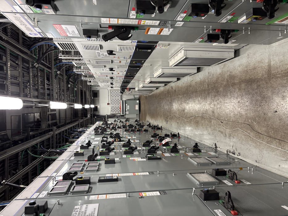 - "A narrow service corridor between rows of industrial electrical control panels" by FM-UQOWn2, licensed under CC BY 4.0
