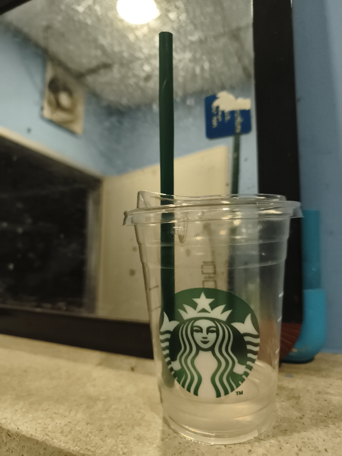 - "The image displays a clear plastic Starbucks cold cup, mostly empty, resting on a light-colored, speckled countertop" by FM-H4hzl2, licensed under CC BY 4.0