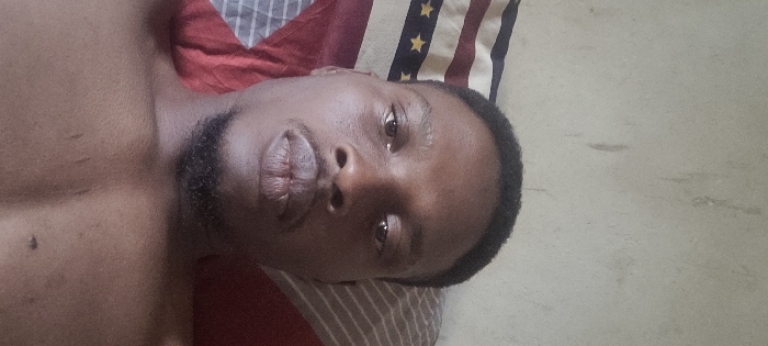 The image displays an adult male, of dark complexion, from the chest up, in what appears to be an indoor setting in Badiko, Nigeria