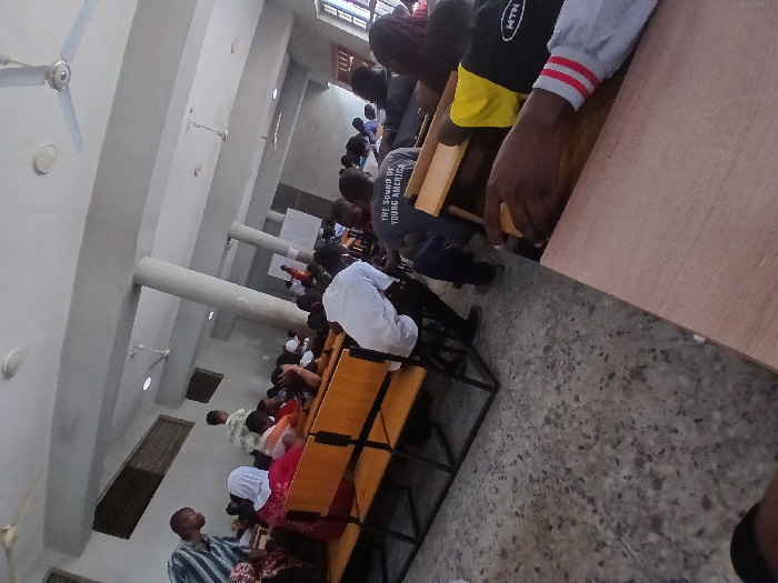 This image captures a densely populated lecture hall or large classroom within a university or college setting in Lagos, Nigeria
