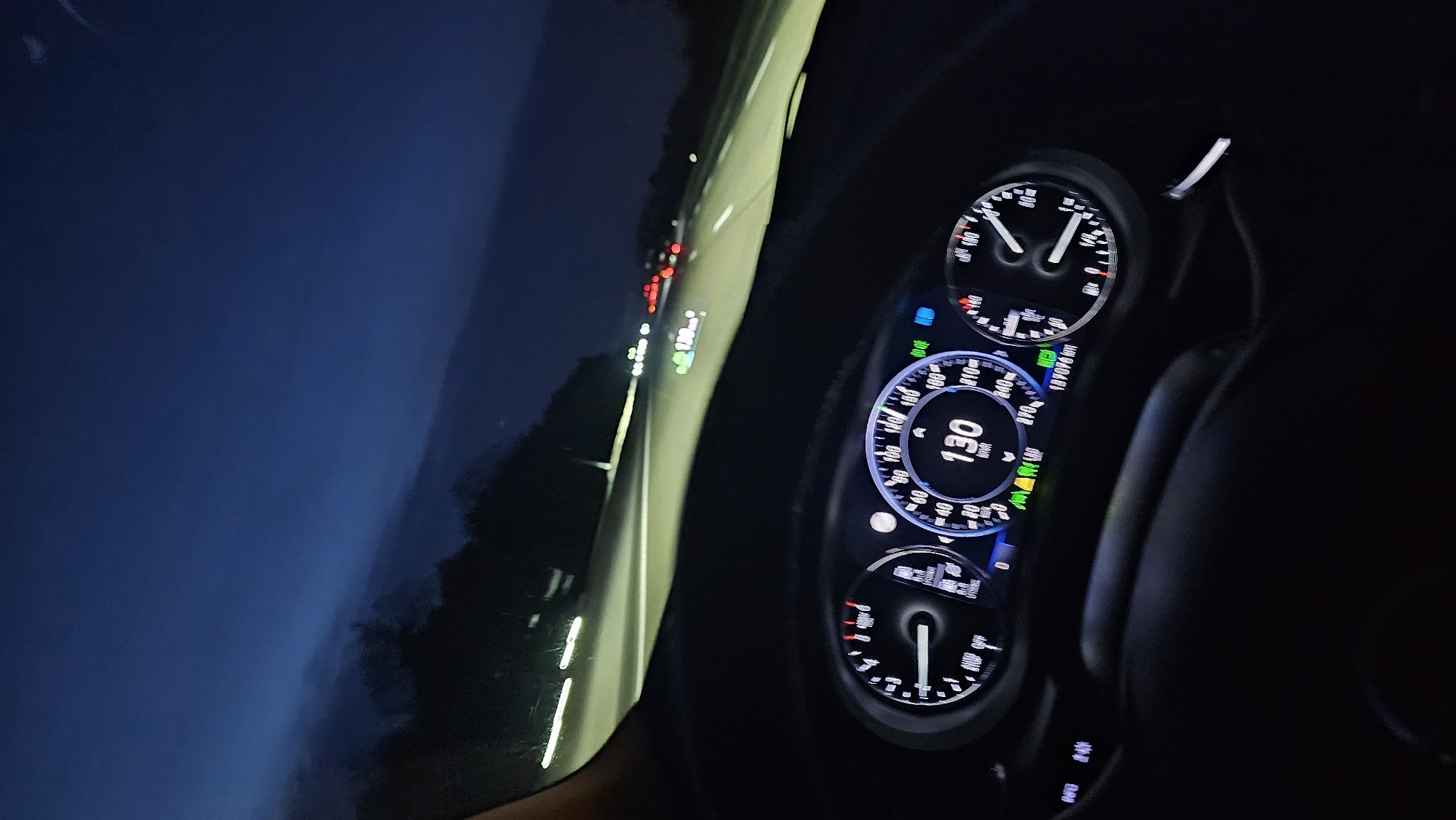 - "The image depicts the interior perspective of a vehicle, specifically the dashboard and the view through the windshield, at dusk or night, on a multi-lane highway in Seligenstadt, Germany" by FM-glf8h1, licensed under CC BY 4.0