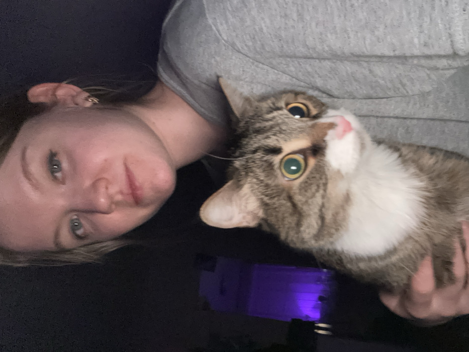 - "The image displays a young adult female holding a tabby-and-white cat, captured in a close-up at night" by FM-oAmG62, licensed under CC BY 4.0