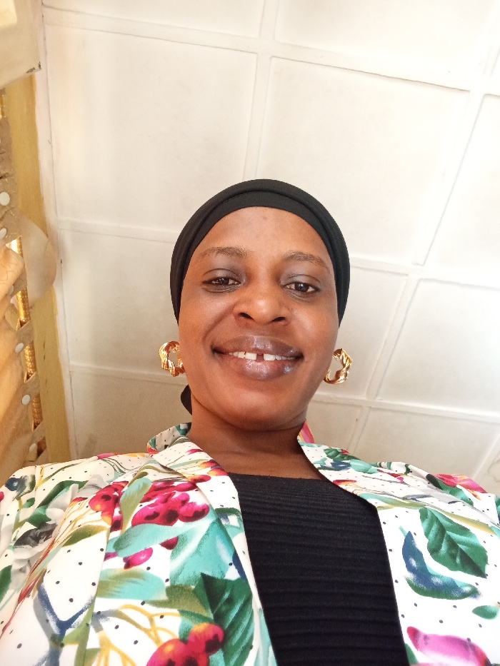 An adult female is depicted in a close-up, upward-angled shot indoors in Narayi, Nigeria