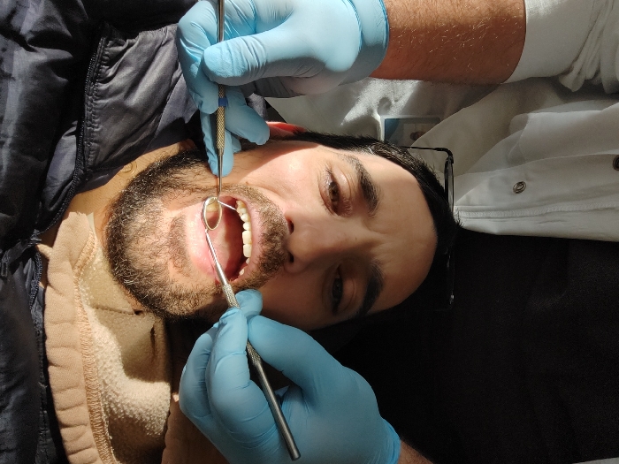 - "The image displays an adult male patient undergoing a dental examination, viewed from a close, upward perspective" by FM-3Ip2o1, licensed under CC BY 4.0