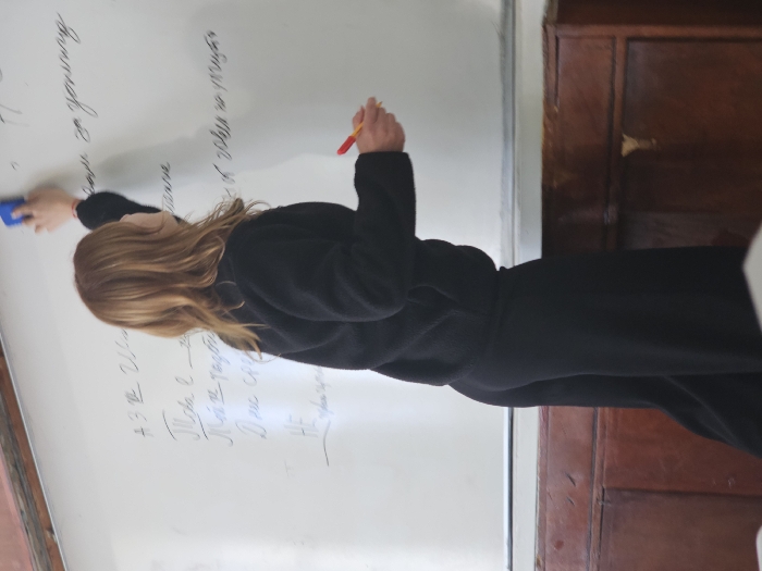 - "A person, identified as female, with shoulder-length light brown hair, is depicted from a rear-left perspective actively erasing a whiteboard in what appears to be an educational setting" by FM-Hq9Fv1, licensed under CC BY 4.0