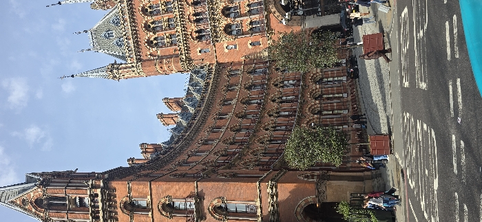 - "The image displays an exterior view of the St Pancras Renaissance Hotel in London, United Kingdom, under a bright blue sky with scattered white clouds" by FM-XTmnP2, licensed under CC BY 4.0