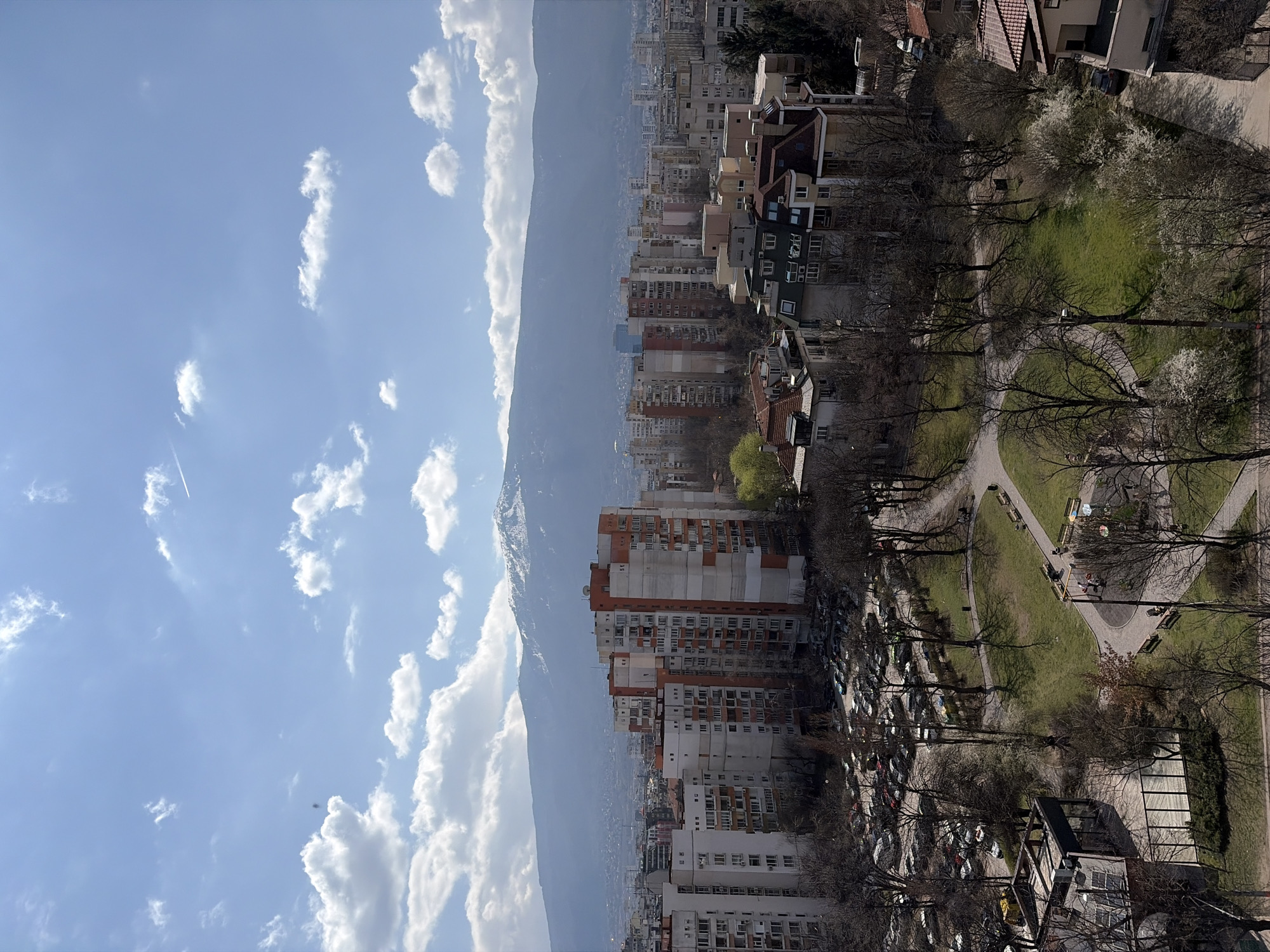 - "An aerial perspective captures an urban landscape in Sofia, Bulgaria, under a partly cloudy sky with Vitosha mountain, partially snow-capped, dominating the southern horizon" by FM-AgNRy2, licensed under CC BY 4.0