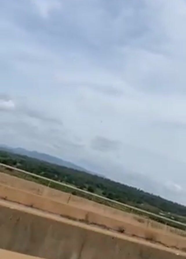 The video, shot from a moving vehicle, shows the view from a bridge or elevated roadway
