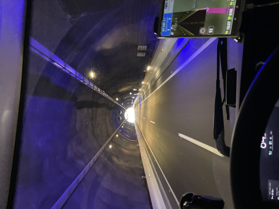 - "The image provides a driver's perspective from within a moving vehicle, likely a truck, traveling through a modern highway tunnel" by FM-aSc183, licensed under CC BY 4.0