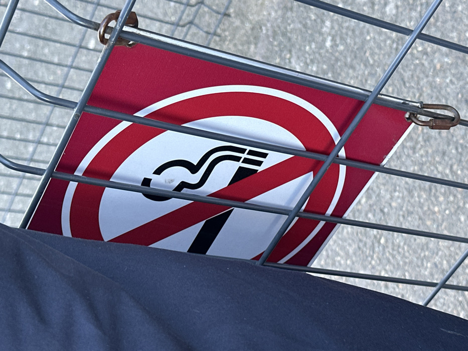 - "The image captures a "No Smoking" sign affixed to a grey metal wire fence in Tillé, France" by FM-9gGO02, licensed under CC BY 4.0