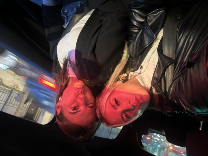 - "Two young adult females are seated within a vehicle, appearing to be in the rear passenger area, during nighttime or low-light conditions" by FM-bcuvC3, licensed under CC BY 4.0