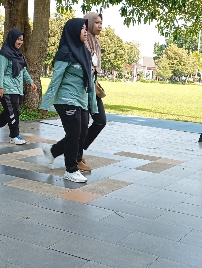 - "Three women wearing hijabs and casual athletic clothing walk on a tiled path" by FM-0ickv1, licensed under CC BY 4.0