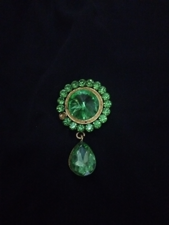 - "A single piece of costume jewelry, likely a brooch or pendant, is centered against a solid black background" by FM-CuvaI2, licensed under CC BY 4.0