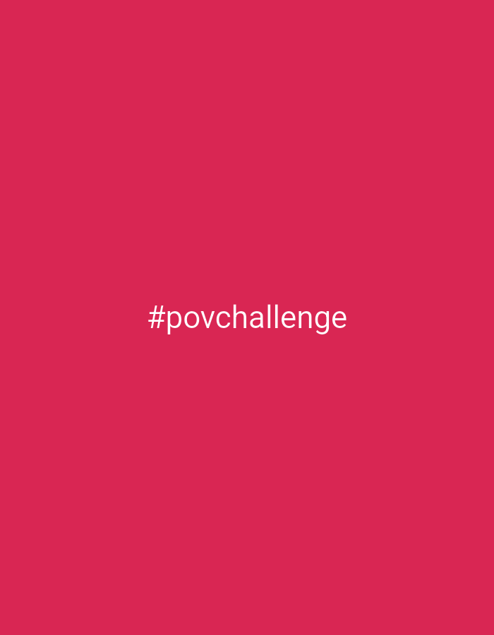 The image displays a solid magenta-red background. Centered on this background are the white lowercase characters forming the hashtag "#povchallenge". No other subjects, objects, people, actions, or specific environmental details are visible within the frame, precluding identification of a location such as Onitsha, Nigeria.