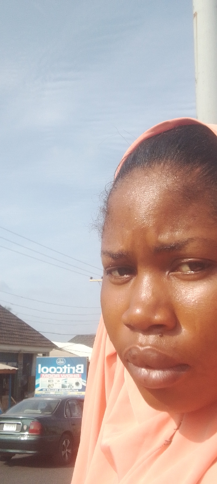 An outdoor scene in Adankolo, Nigeria, features a close-up of a dark-skinned female subject looking directly at the camera