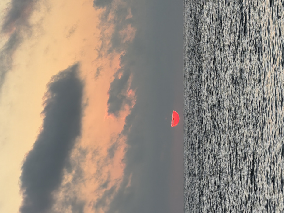 A vertically oriented image shows a striking contrast between sky and sea