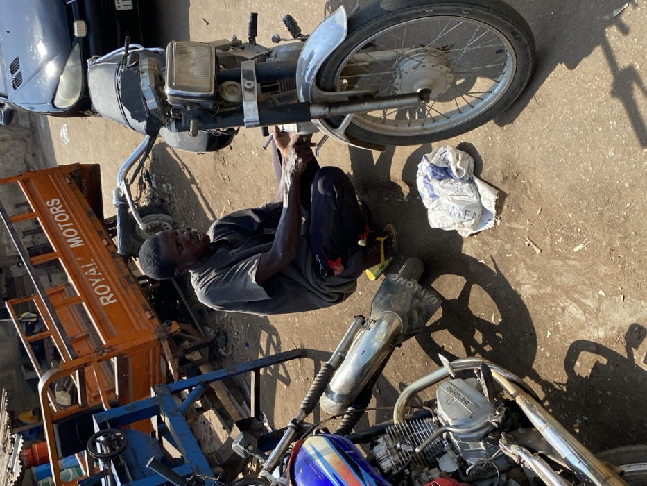 - "The image depicts an outdoor motorcycle repair scene in Lokoja, Nigeria, under bright daylight" by FM-B1vnC2, licensed under CC BY 4.0