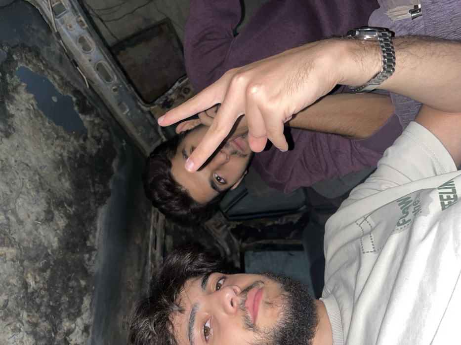 - "Two young adult males are depicted in a self-portrait taken inside the damaged interior of a vehicle in Zamalka, Syria" by FM-WnN6r1, licensed under CC BY 4.0