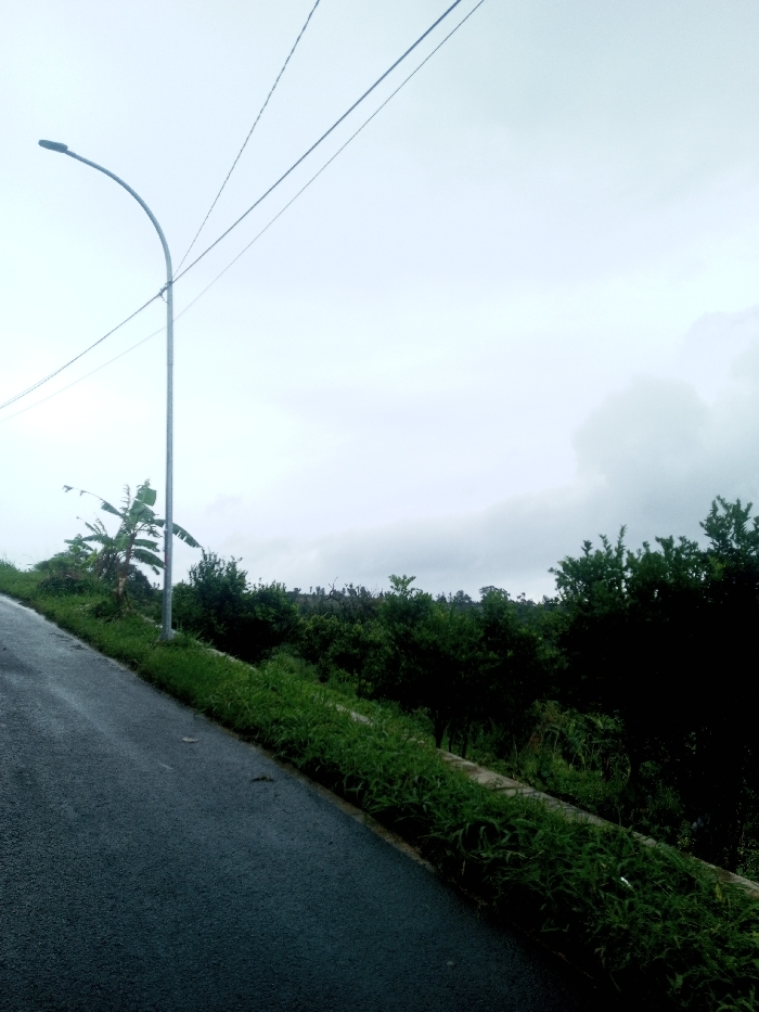This image depicts a quiet, semi-rural road scene in Babaliya Mal