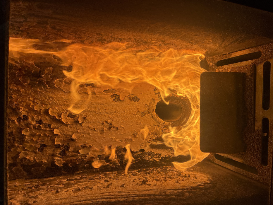 The image displays the active interior of a combustion chamber, located in the city of Unknown, Unknown