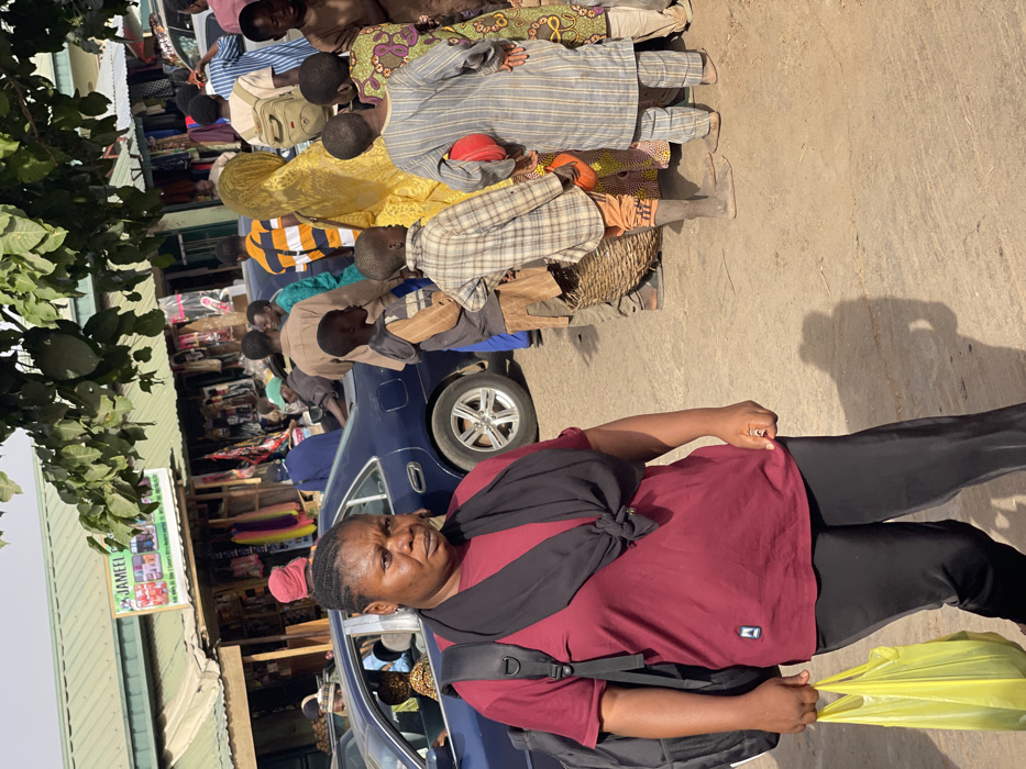 A daytime image depicts a bustling street market in Samaru, Nigeria