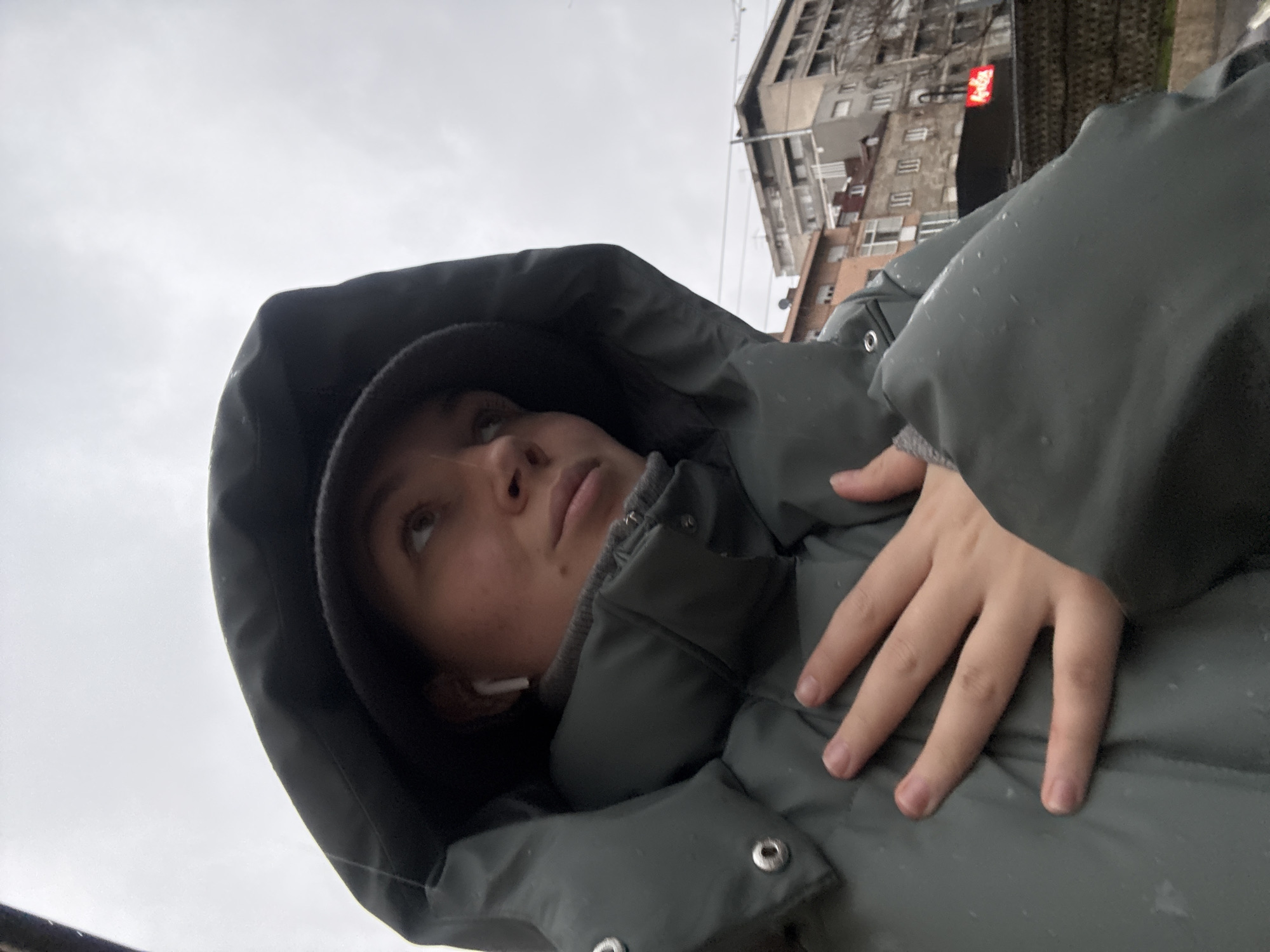 - "A person wearing a gray hooded puffer jacket and a dark beanie is depicted in an angled, low-angle close-up shot" by FM-7mF7g2, licensed under CC BY 4.0