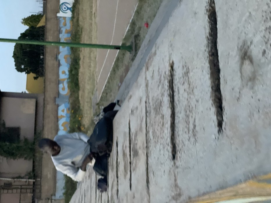 - "An individual is depicted in the midground, crouched over a black backpack on a wide, weathered concrete surface in the city of Jos, Nigeria" by FM-LCYzr2, licensed under CC BY 4.0