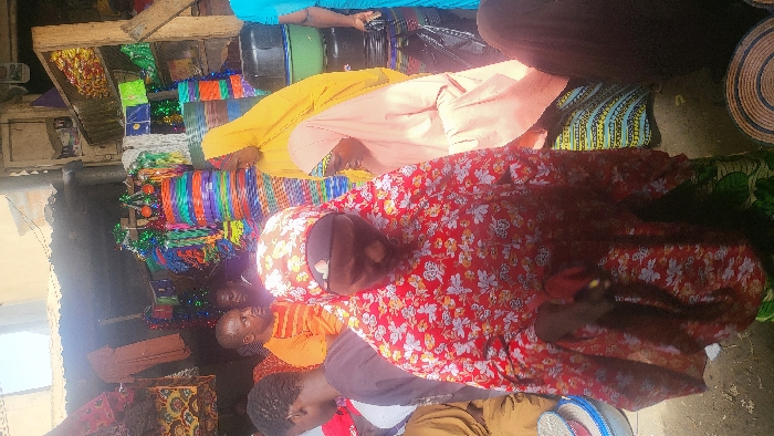 The image depicts an outdoor market scene in Fagge D1, Nigeria, under bright daylight conditions