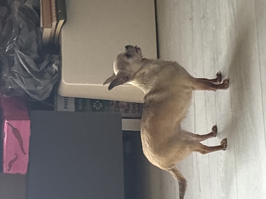 - "A fawn-colored Chihuahua dog stands in profile, facing right, on a light-colored, possibly tiled or wood-laminate floor" by FM-hp5JW2, licensed under CC BY 4.0