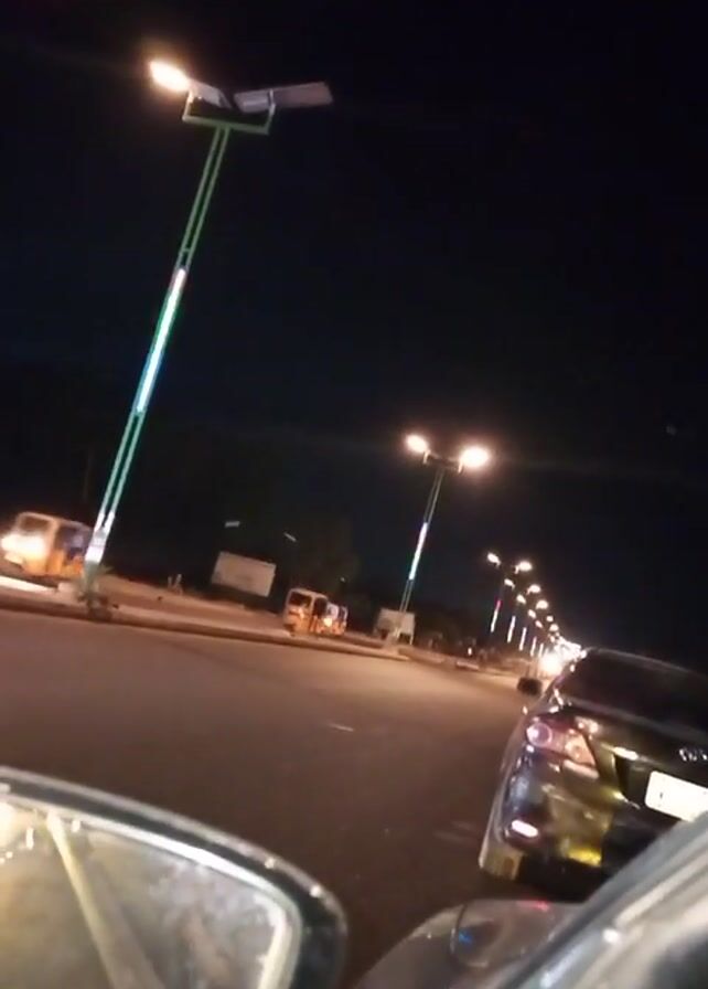 The video, shot at night, appears to be taken from inside a moving vehicle, possibly a car