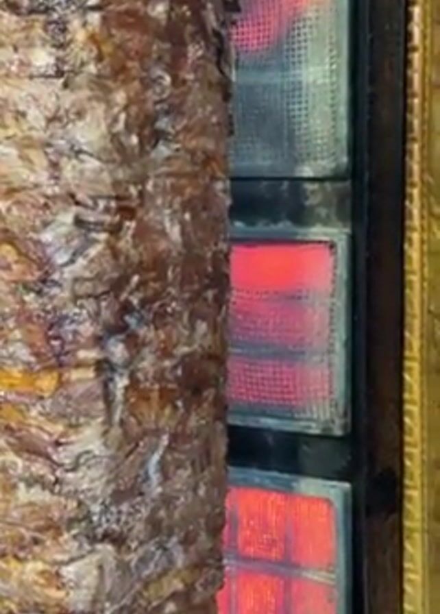 - "vertical spit of meat roasting in front of a vertical heating element" by FM-A8VXI3, licensed under CC BY 4.0