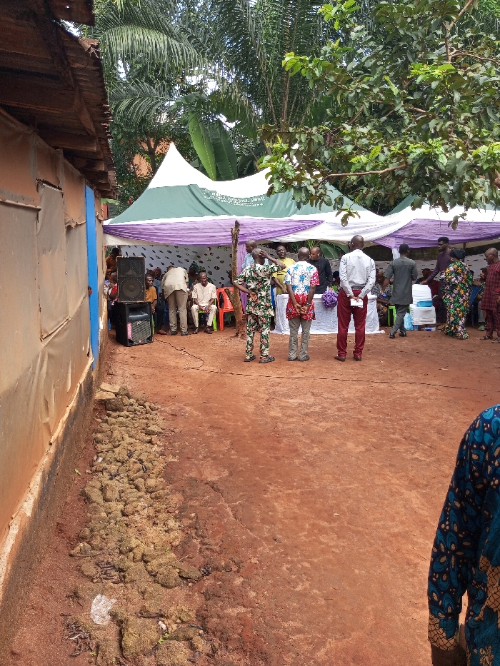 This image captures an outdoor gathering in Oko Town, Nigeria