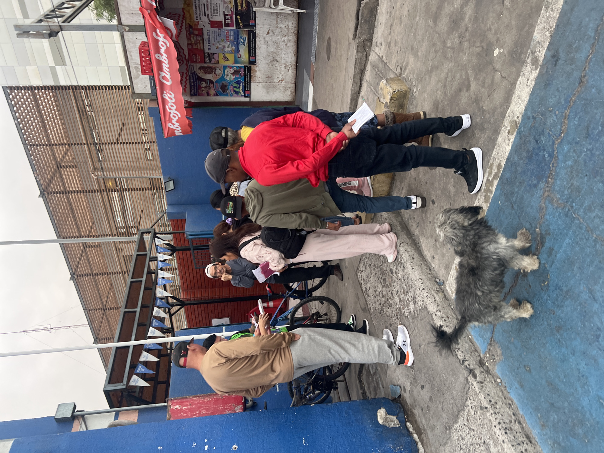 - "A group of people stand in a queue on the sidewalk in Arica, Chile" by FM-8OFL92, licensed under CC BY 4.0