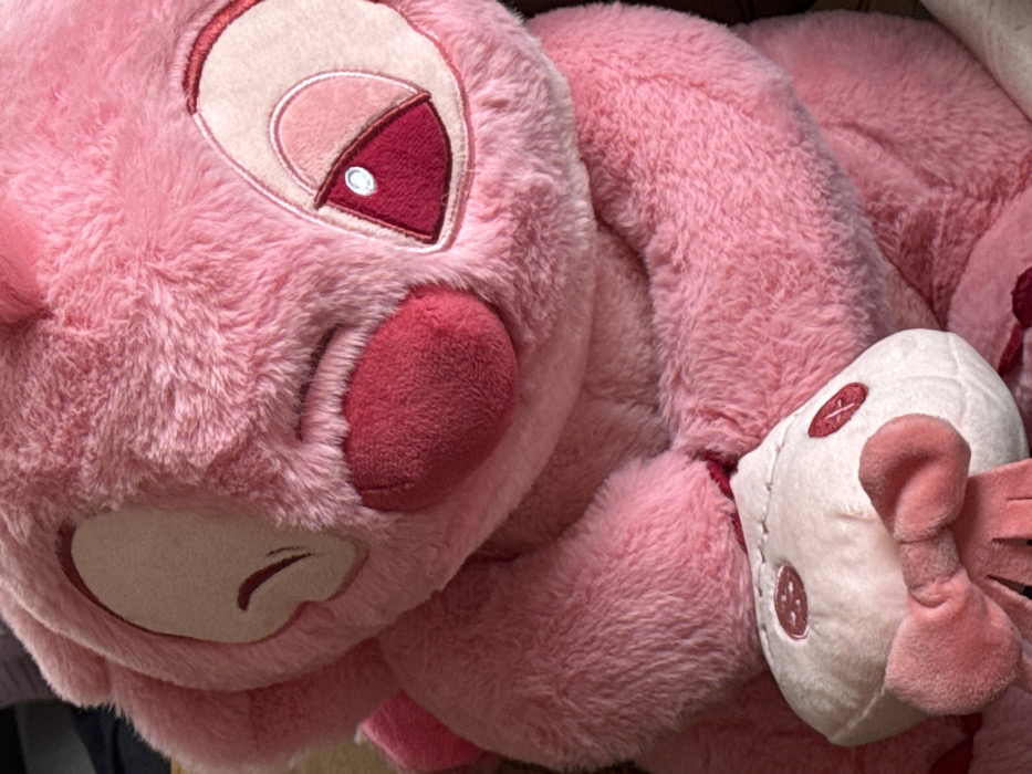 - "The image displays a close-up of a large, plush, light pink toy, identified as the character Angel from the Lilo & Stitch franchise, situated in an indoor environment in Kurganinsk, Russia" by FM-fYcxL2, licensed under CC BY 4.0