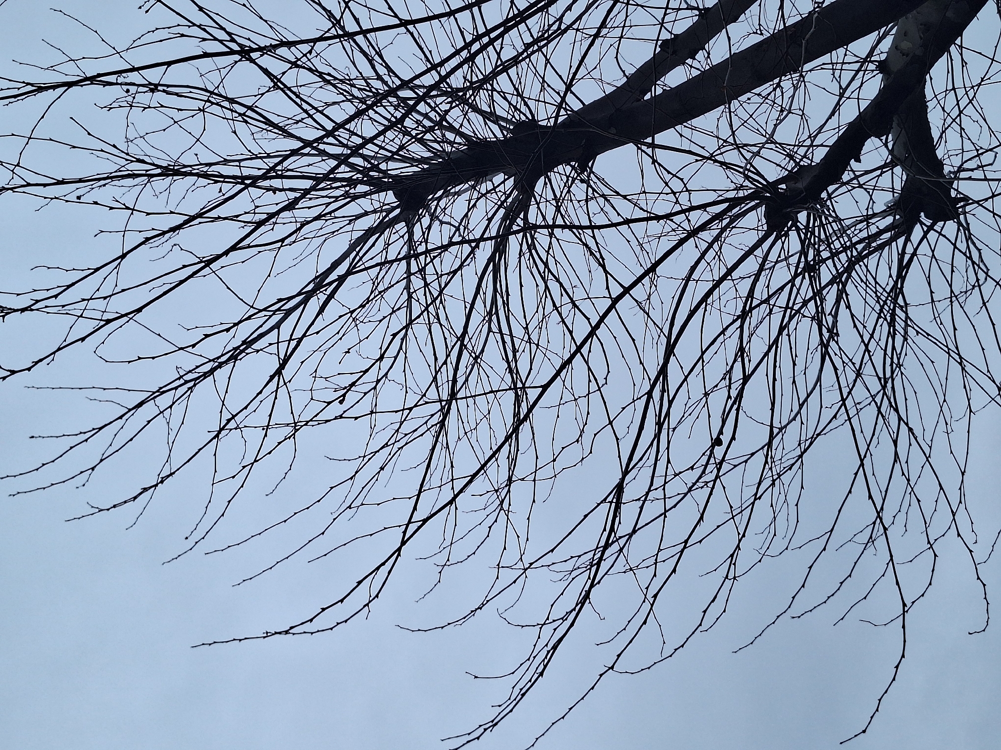 - "The image depicts the bare canopy and upper trunk of a deciduous tree silhouetted against a uniformly light grey-blue, overcast sky in Novorossiysk, Russia" by FM-UmrtH2, licensed under CC BY 4.0